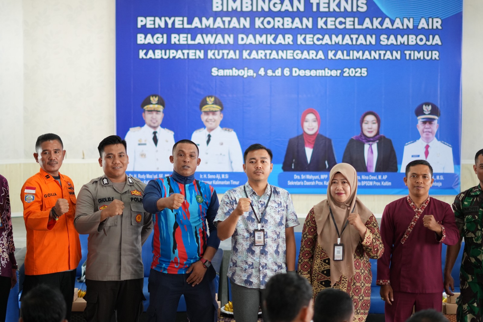 Samboja, 5 Desember 2025 – Bertempat di BPU Kantor Camat Samboja, Badan Pengembangan Sumber Daya Manusia bekerja sama dengan Basarnas Balikpapan menggelar Bimbingan Teknis (Bimtek) Peningkatan Kapasitas Relawan Pemadam Kebakaran Kecamatan. Kegiatan ini berlangsung selama tiga hari, mulai 4–6 Desember 2025.