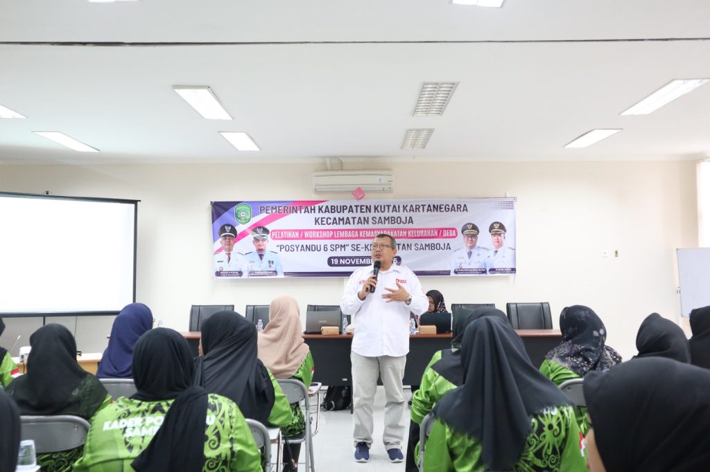 Samboja, 19 November 2025 – Bertempat di Balai Pelatihan Sanipah, Pemerintah Kecamatan Samboja bekerja sama dengan Dinas Pemberdayaan Masyarakat dan Desa (DPMD) Kabupaten Kutai Kartanegara mengadakan Pelatihan Posyandu 6 SPM yang diikuti oleh peserta dari seluruh kelurahan dan desa se-Kecamatan Samboja.